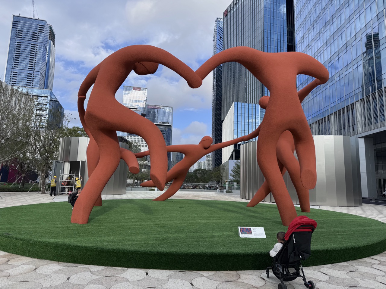 以马蒂斯经典画作《舞蹈》为灵感,呈现一个可自由穿行、与人共舞的公共艺术场域,在深圳湾的海景交织中,尽享湾区生活的律动。